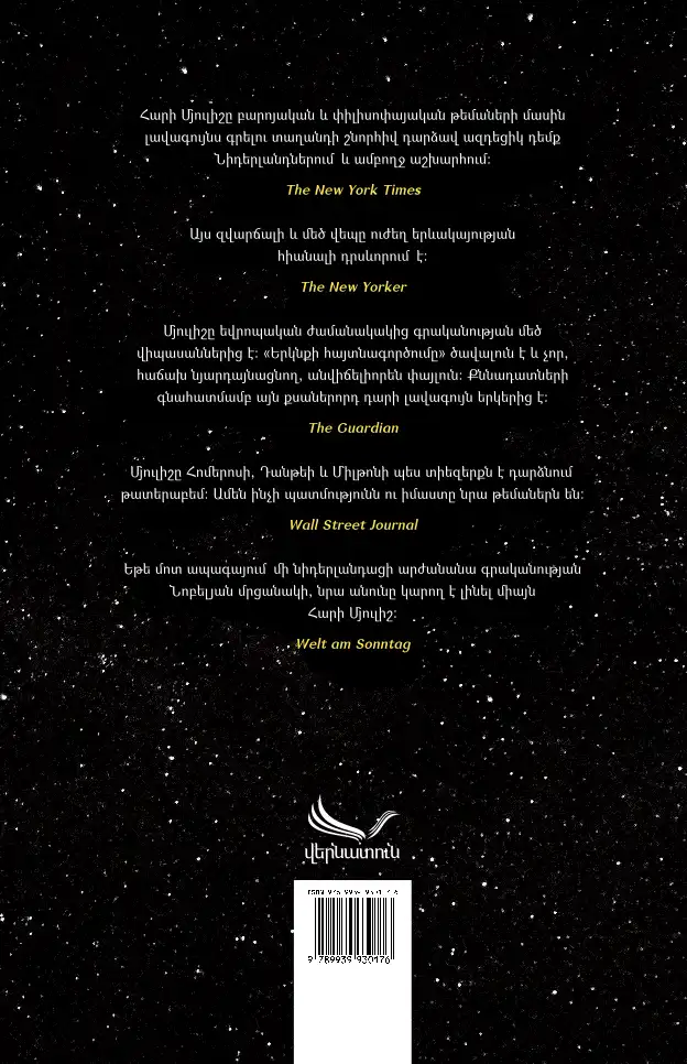 «Երկնքի հայտնագործումը» վեպը նիդերլանդցի ականավոր գրող Հարի Մյուլիշի գլուխգործոցն է: Կոթողային այս երկը հոգեբանական է և փիլիսոփայական, արկածային է և միստիկական, նաև պատմական ժամանակագրություն է: Վեպը անտեսանելի հաղորդակցություն է Երկնքի արքայության և Երկրի բնակիչների միջև: Մարդկությունը վերջնականապես բարկացրել է Աստծուն: Եվ այժմ բոլոր մեղքերի պատճառով Նա ցանկանում է Երկինք վերադարձնել տասը պատվիրանները, որ Երկիրն ընդմիշտ մնա սատանայի ճիրաններում: Պատվիրանների քարե տախտակները կարող է գտնել և դրախտ հասցնել միայն ընտրյալը, որի ծնունդը փորձությունների և մտածումների բարդ շղթա է: